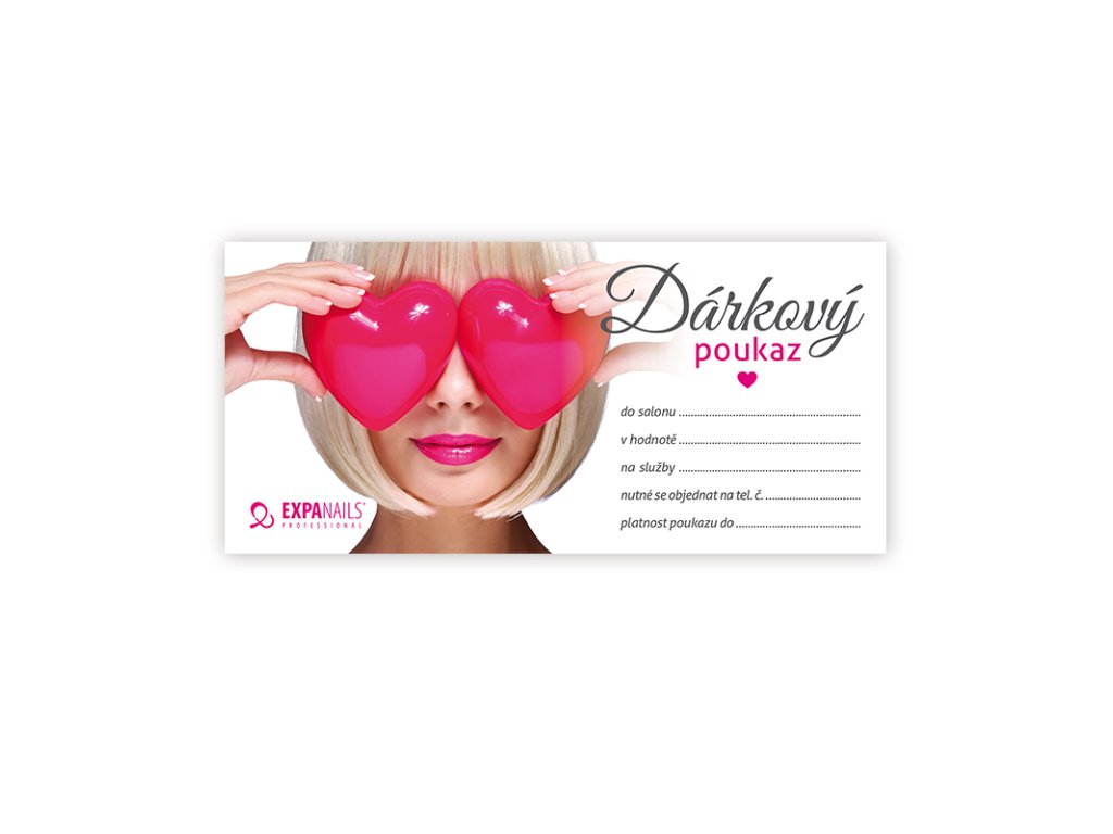 Dárkový poukaz na služby v salonu pro Vaše klientky. Rozměry:10x21 cm