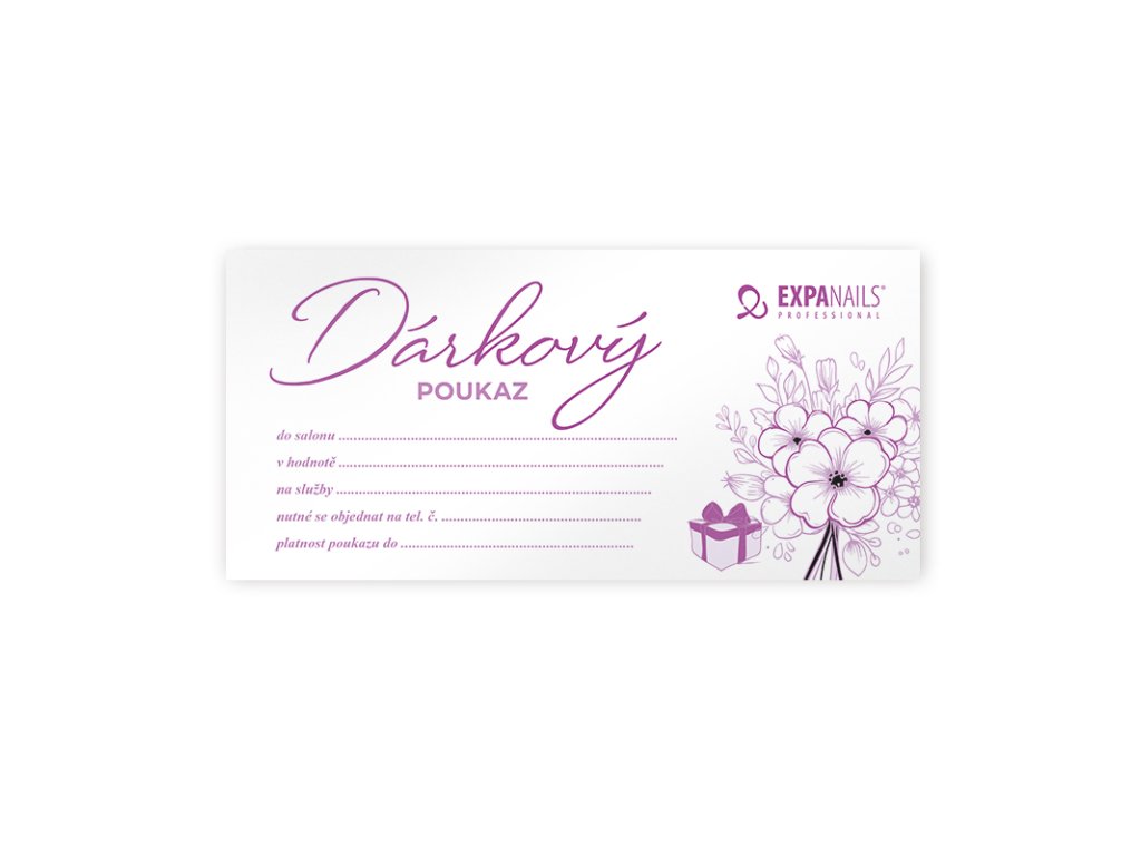 Dárkový poukaz na služby v salonu pro Vaše klientky. Rozměry:10x21 cm