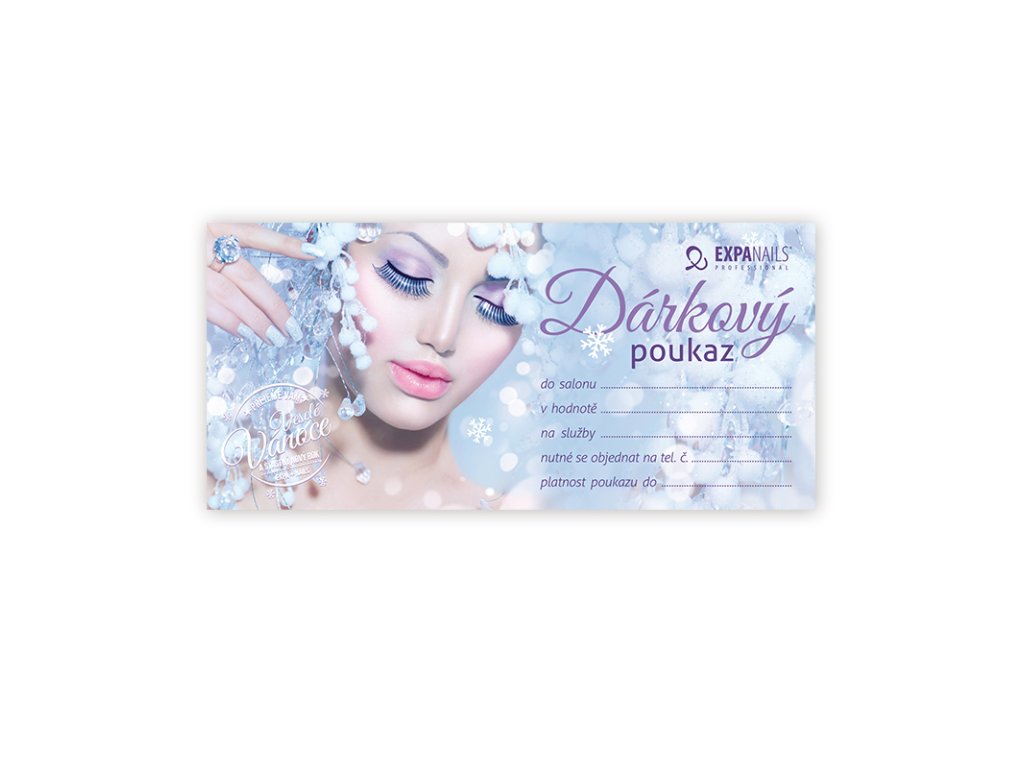 Dárkový poukaz na služby v salonu pro Vaše klientky. Rozměry:10x21 cm