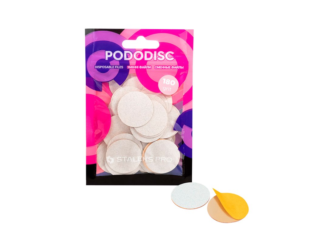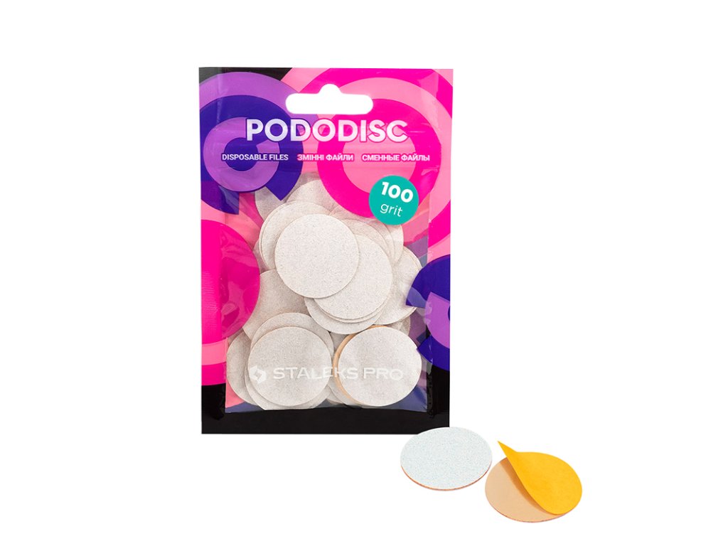 Staleks Pro brusné nalepovací disky - bílé hrubost 100 nebo 180 jsou jednorázové pilníky s vysoce kvalitním brusivem, které poskytují snadné a precizní ošetření chodidel.
