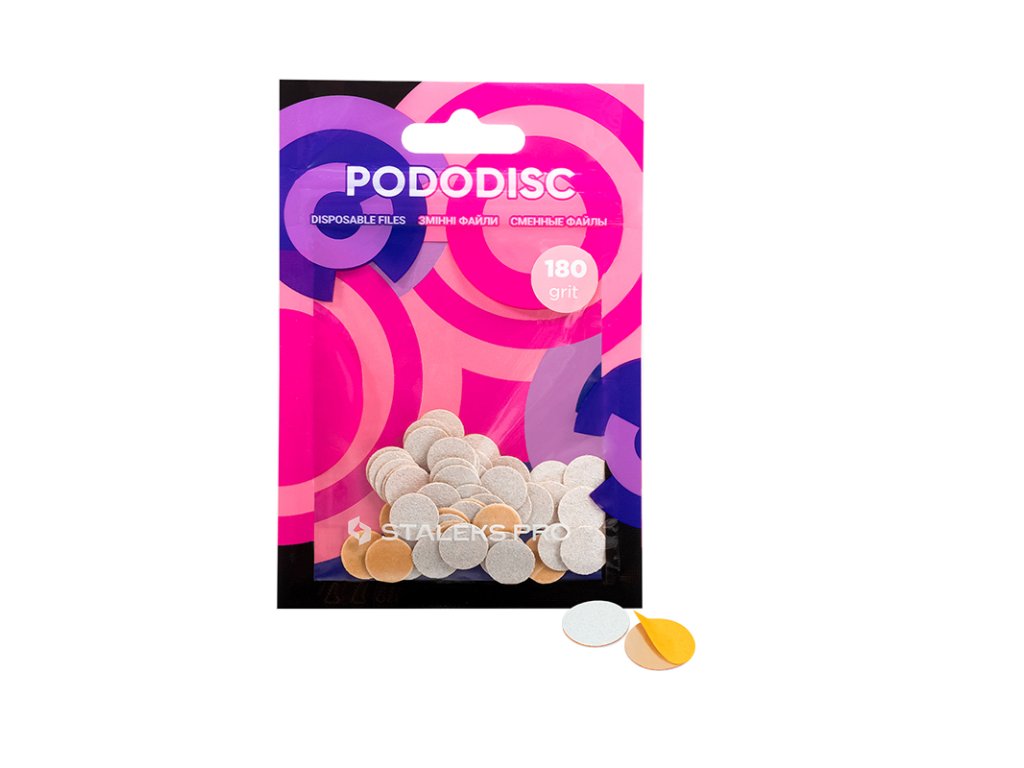 Staleks Pro brusné nalepovací disky - bílé hrubost 100 a 180 jsou jednorázové pilníky s vysoce kvalitním brusivem, které poskytují snadné a precizní ošetření chodidel a dlaní.