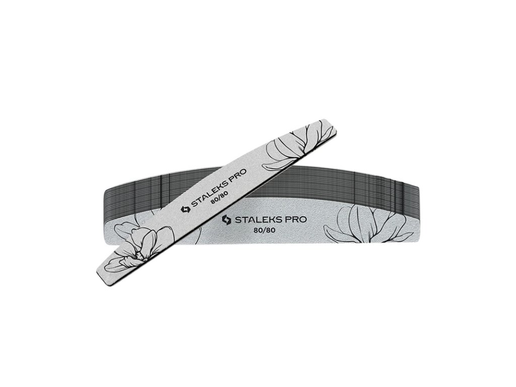 Staleks Expert Pilník 100/180 - oboustranný pilník ve tvaru půlměsíce se dvěma různými zrnistostmi. Díky jeho tvaru se s ním výborně pracuje, rovná strana pilníku je ideální pro pilování tvaru nehtů a oblá strana pro pilování nehtů kolem kůžičky (díky oblému tvaru nedojde k pořezání kůžičky).