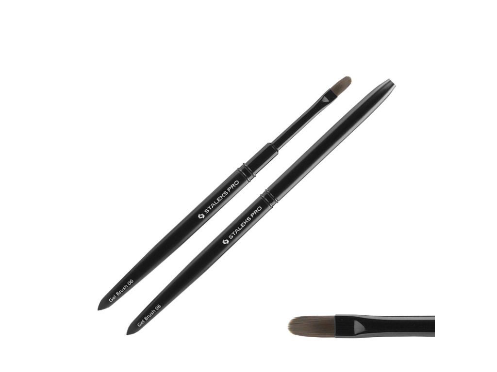 Štětec na gel - oválný tvar pro rovnoměrné nanášení gelu, efektivní pro práci na větších plochách nehtu. Štětiny ze syntetických vláken zajišťují vynikající pružnost a odolnost a pohodlný tvar hliníkové rukojeti umožňuje snadné držení. Specifikace: Šířka štětin: 6 mm Délka štětin: 11 mm Délka štětce: 18 cm