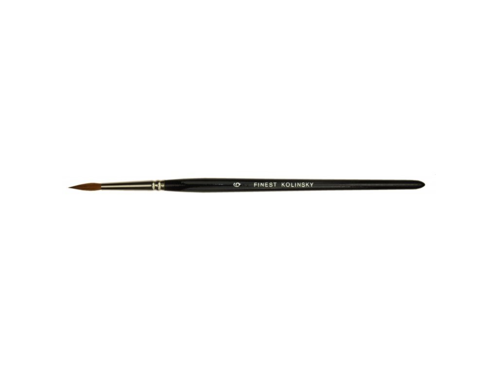 Štětec na nehty Kolinsky č.0 - kulatý, špičatý, vlas z kolonoka (Mustela siberica), bezešvá stříbrná zděř, leské černé lakované držátko.