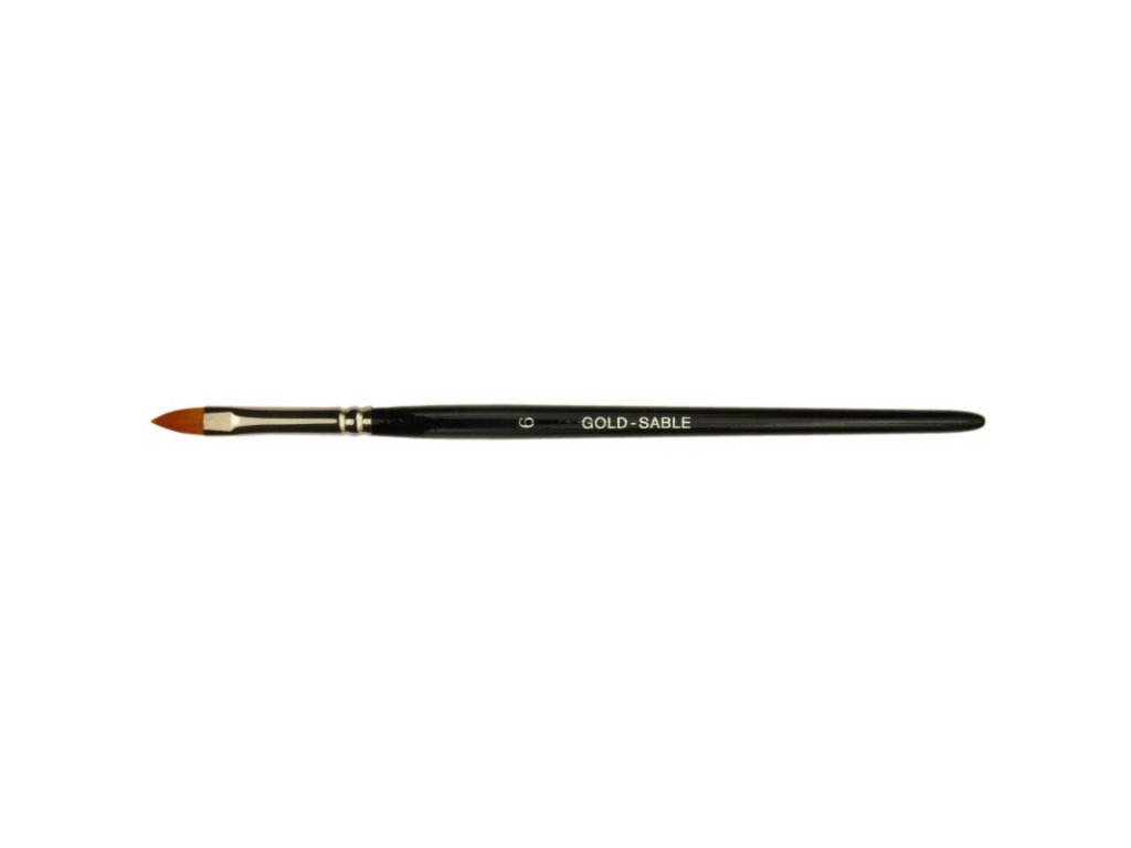 Štětec na nehty Gold Sable č.4 - plochý, tvar kočičí jazýček, načervenalý syntetický vlas - Gold Sable, bezešvá stříbrná zděř, leské černé lakované držátko.