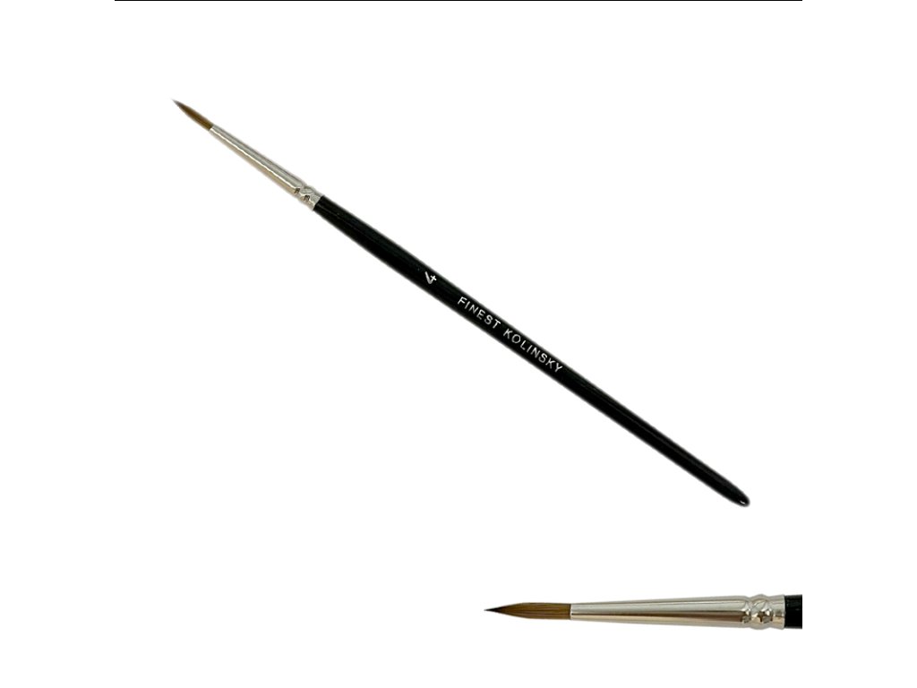 Štětec na nehty Kolinsky č.4 - kulatý, špičatý, vlas z kolonoka (Mustela siberica), bezešvá stříbrná zděř, leské černé lakované držátko.