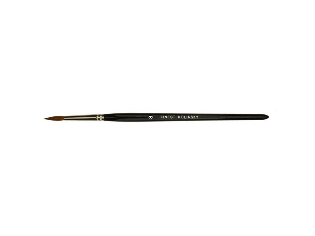 ŠTĚTEC č.8 - kulatý, špičatý, vhodný na gel i akryl, bezešvá stříbrná zděř, černě lakované držátko, vlas Kolinsky-Rotmarder.