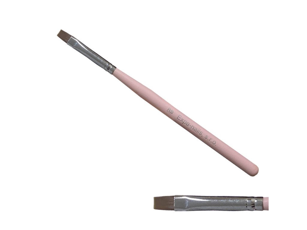 Štětec č. 8 plochý, umělý vlas, který je vhodný na gel. Délka vlasu: 9mm Célková délka štětce: 16cm Rukojeť dřevěná - pastelově růžová.