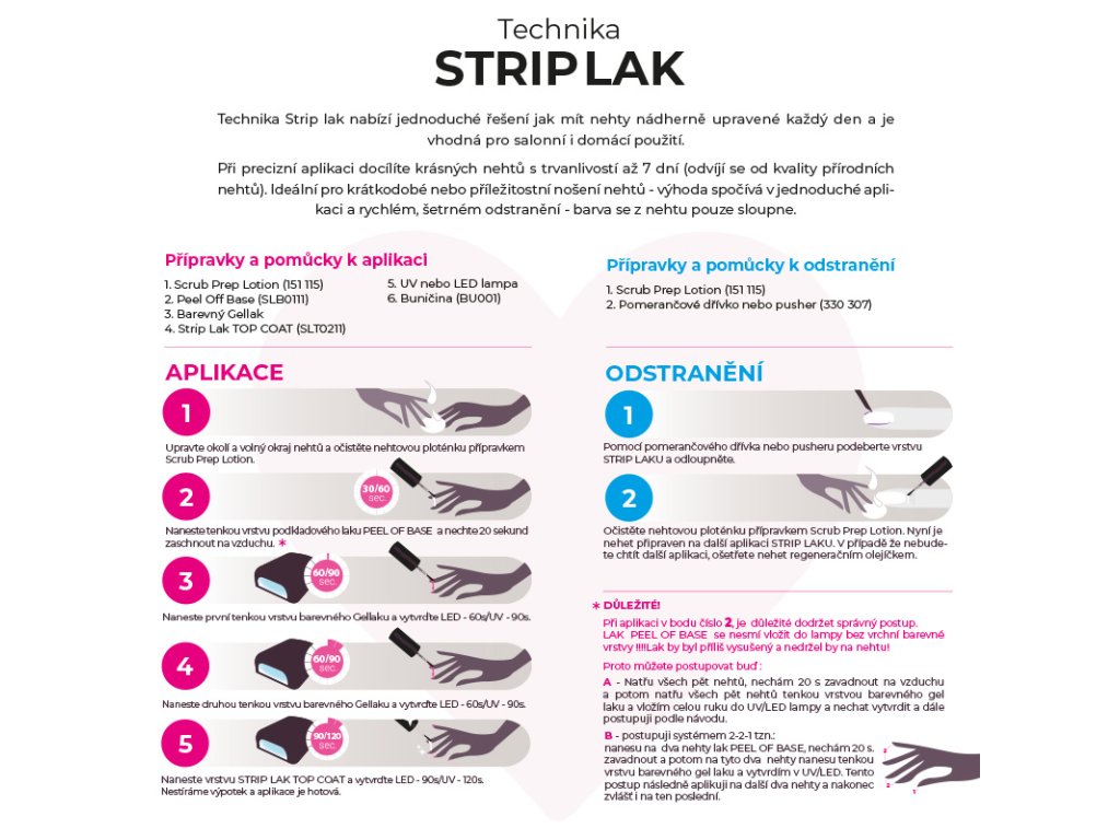 *Při aplikaci v bodu č.2 je důležité dodržet správný postup! PEEL OFF BASE se NESMÍ vložit do lampy bez vrchní barevné vrsty!!! Lak by byl příliš vysušený a nedržel by na nehtu.