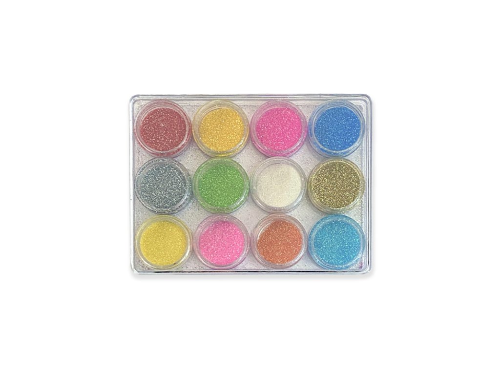 Třpytky jsou vhodné na vkládání do gelu i akrylu. Je možné si třpytky přimíchat do gelu nebo akrylového pudru.