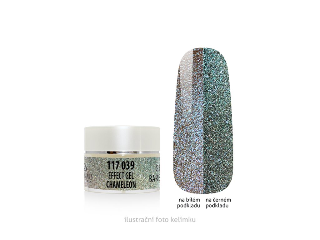 Barevný gel - Effect CHAMELEON obsahuje krásný jemný třpyt , který se změní dle jiného barevného podkladu ( barevného gelu ). Doporučujeme aplikovat na tmavší barvičky, protože na světlých tónech žloutne působí do žluta. Pozor! Tento gel je bezvýpotkový, pokud tedy budete chtít použít ještě lesk, stačí jemně zmatnit pěnovým pilníčkem kód 330201 a můžete aplikovat lesk.