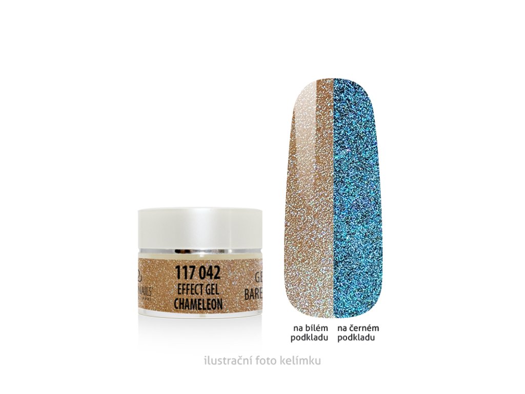Barevný gel - Effect CHAMELEON obsahuje krásný jemný třpyt , který se změní dle jiného barevného podkladu ( barevného gelu ). Doporučujeme aplikovat na tmavší barvičky, protože na světlých tónech žloutne působí do žluta. Pozor! Tento gel je bezvýpotkový, pokud tedy budete chtít použít ještě lesk, stačí jemně zmatnit pěnovým pilníčkem kód 330201 a můžete aplikovat lesk.