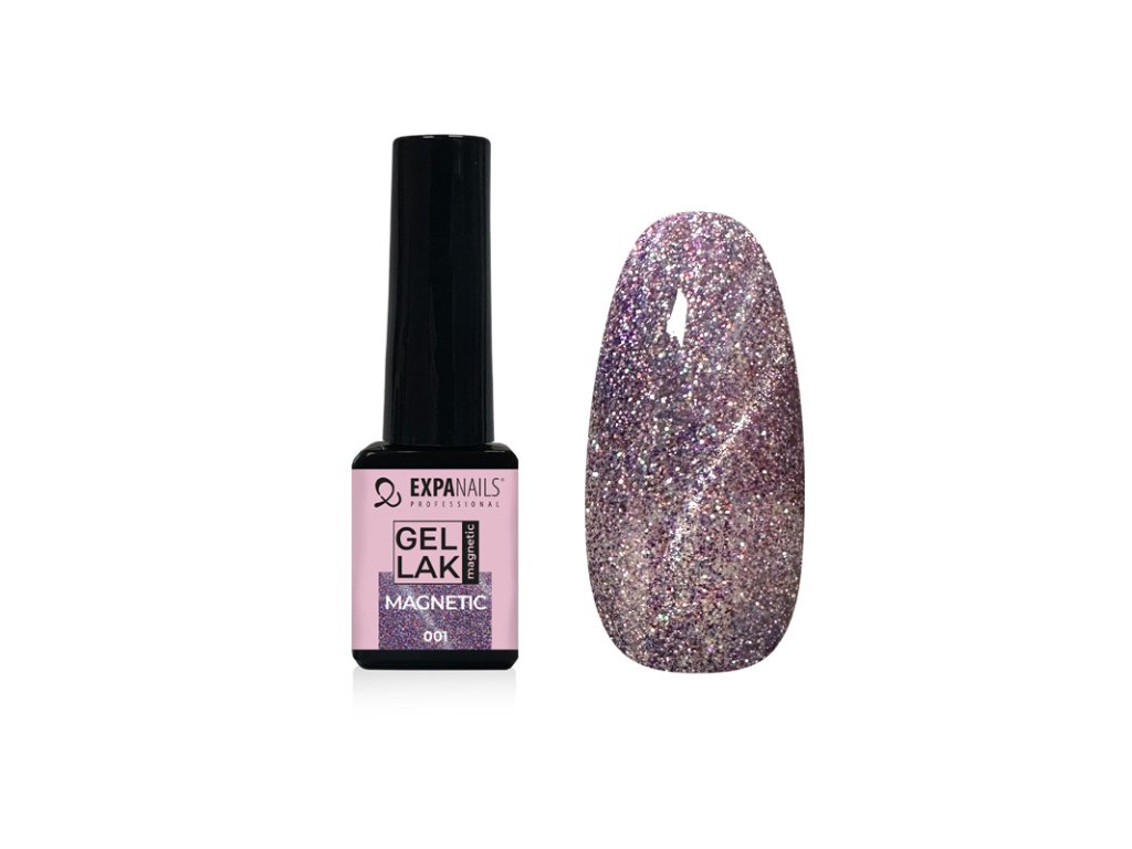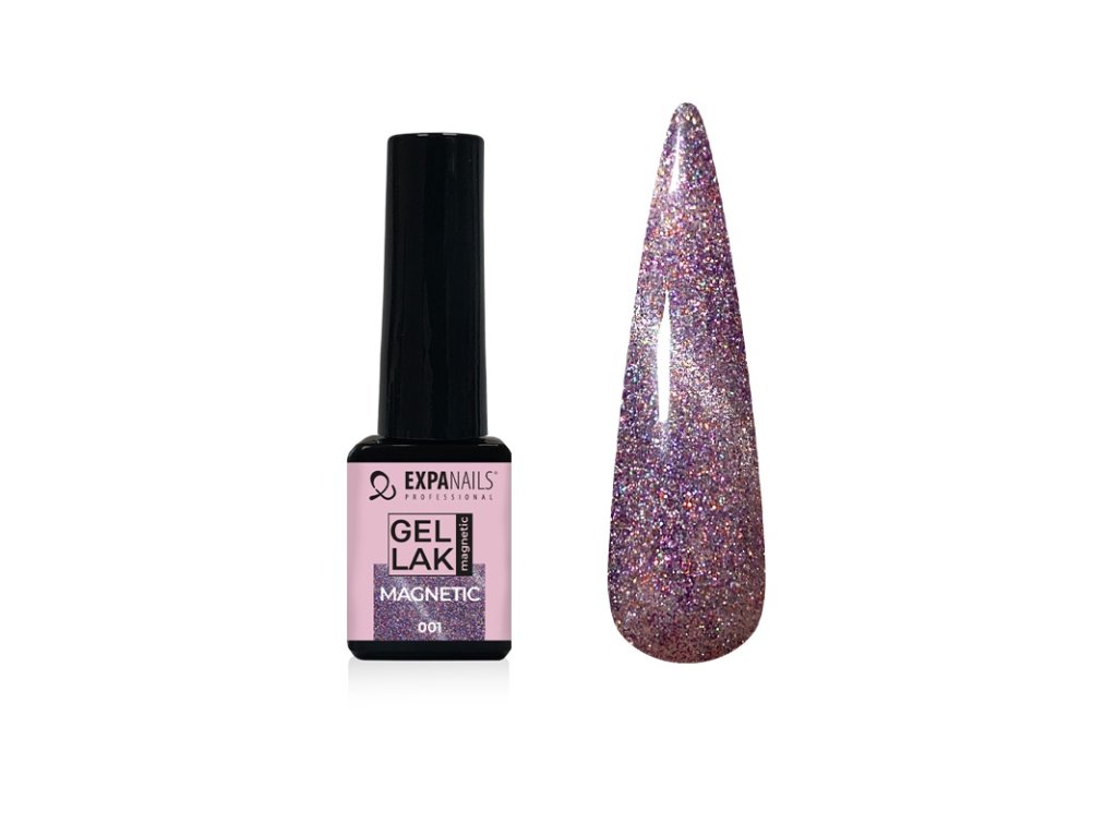 Gel lak Magnetický je /barevný gel, který lze odstranit přípravkem Gel Remover Gel lak mění barvu a vytváří efekt kočičího oka pomocí magnetické destičky, nebo magnetické tužky Některé barvy mají tento efekt hodně viditelný, ale u některých je magnetický efekt velmi jemný a decentní. Tyto gel laky lze použít i bez magnetu, je pružný a extrémně přilnavý k přírodnímu nehtu, vvelmi rychle se vytvrzuje v LED i v UV lampě. Můžeme používat jako barvu k technice Gel lak, ale i jako barevný gel na techniku modelovaného nehtu gelem, akrylem nebo Poly akrygelem. Důrazně dbáme na to, aby přípravky Base coat a Top coat byly vhodné k technice Gel lak, u které se nepiluje a z nehtů se odstraňuje přípravkem Gel/Akryl Removerem. -při technice Gel lak, dbáme na to, aby nehty byly krátké -můžeme používat jako barvu k modelovací technice gel, akryl i Poly Akrygel -u modelovacích technik můžeme nanášet i na velmi dlouhé nehty