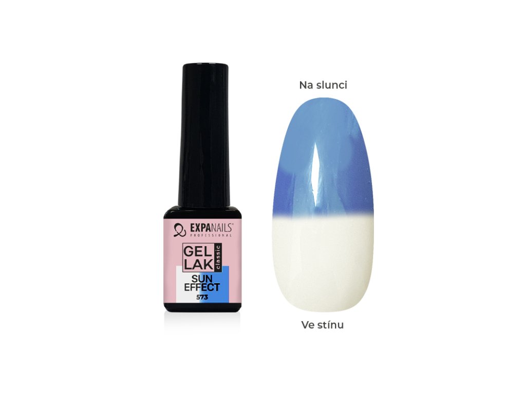 Gel lak SUN effect mění barvu celoplošně na sluníčku.