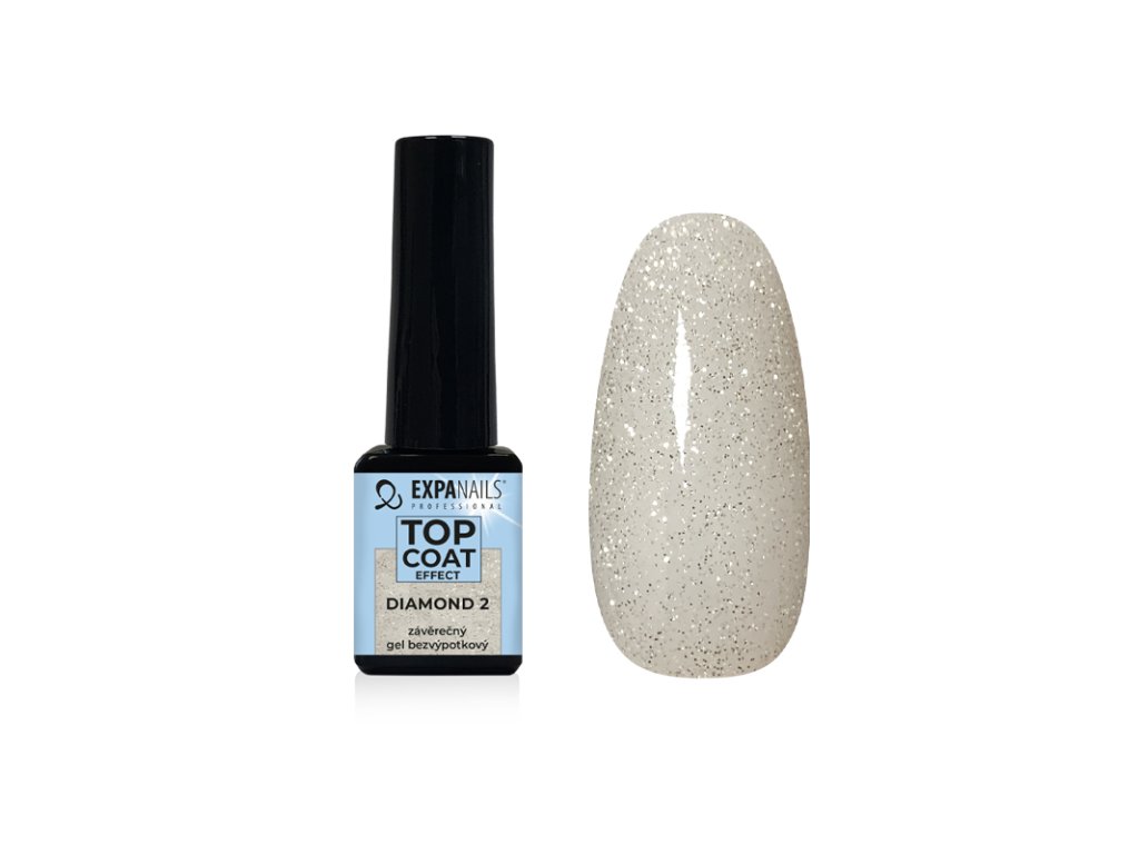 Závěrečný bezvýpotkový lesk, čirý se stříbrným třpytem, který je velmi pružný a efektový lesk. Oživí každou barvu a vytvoří na povrchu barevného gelu krásný třpytivý efekt.