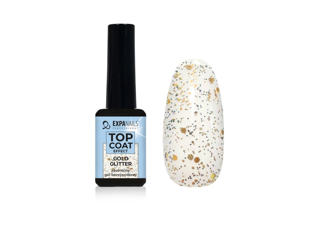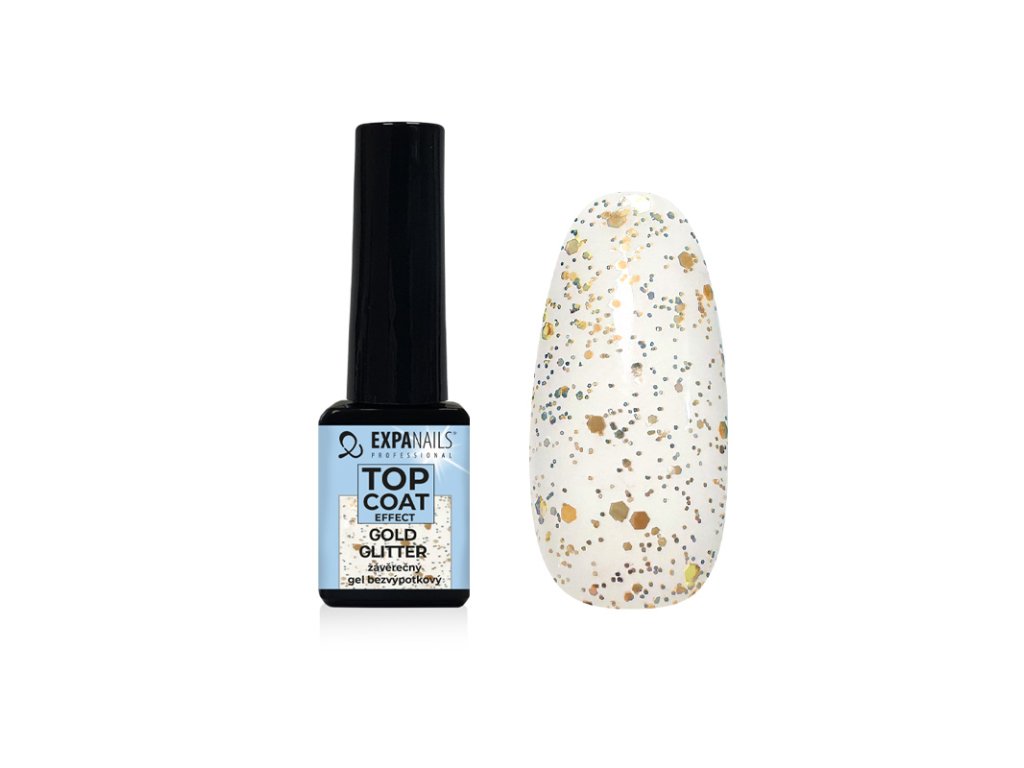 Závěrečný bezvýpotkový lesk, čirý se zlatými třpytkami, který je velmi pružný a efektový lesk. Oživí každou barvu a vytvoří na povrchu barevného gelu krásný třpytivý efekt.