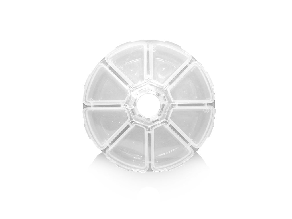 Zásobník na ozdoby (kulatý) obsahuje 8 polí samostatně otvíratelné. Průměr 10cm