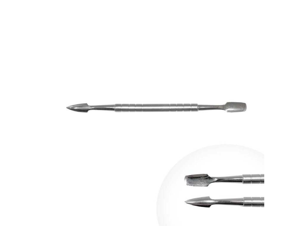 Kovový zatlačovač kůžičky, oboustranný - délka 12,5cm. Vysoce kvalitní provedení z nerezové oceli v matném provedení